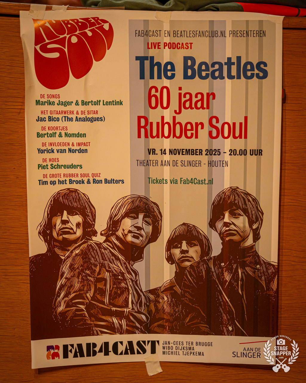 Reportage · 14. November 2025 Fab4Cast - Rubber Soul 60 jaar - Theater Aan de Slinger Houten tagPlaceholderTags: